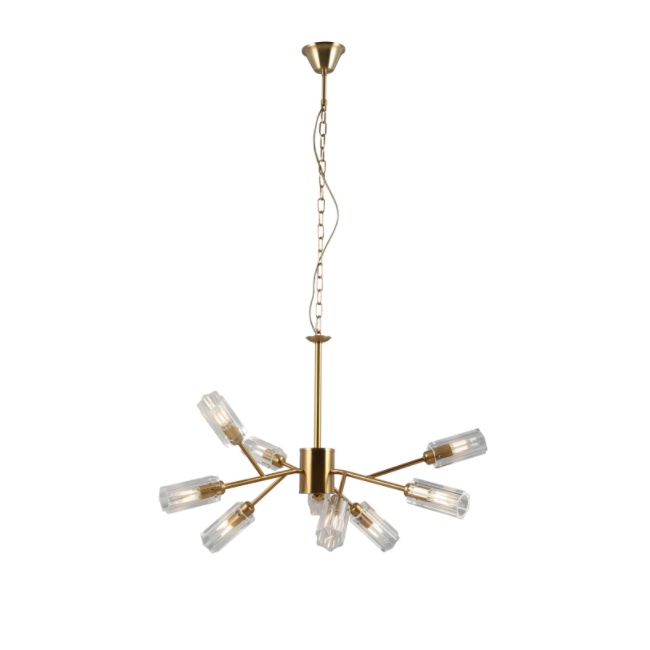 শক্তিশালী আলো 9-আলো কাচের সোনার ঝাড়বাতি: 9 ই 14 বাল্বগুলি একটি রেডিয়াল শাখার আকারে সাজানো হয়। সুনির্দিষ্ট কোণ গণনার মাধ্যমে, এটি 300 লাক্সের গড় আলোকসজ্জার সাথে 360 ° অবরুদ্ধ আলোগুলি অর্জন করে, 12-20㎡ স্পেসের বাণিজ্যিক এবং হোম লাইটিংয়ের প্রয়োজনীয়তা পূরণ করে।